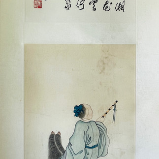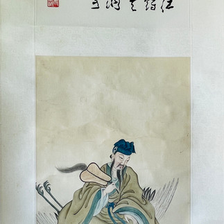 Mr. Zichen Shi, a famous calligrapher, specially inscribed the first couplet for the Eight Immortals and mounted it on the upper part of the paintings.